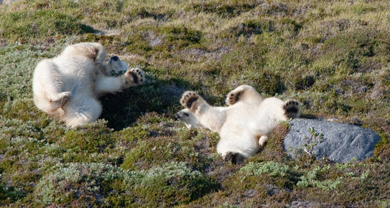 Polar bears rolling in the crowberries, Napassorssuaq Fjord, Greenland