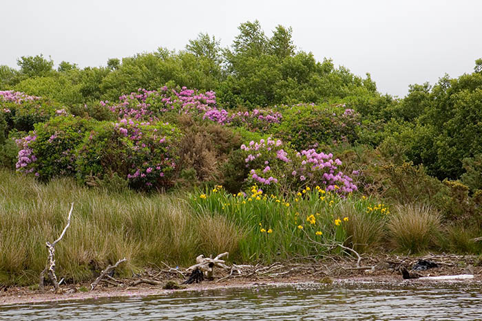 Flags and rhododendron, Sneem, Co. Kerry, Ireland