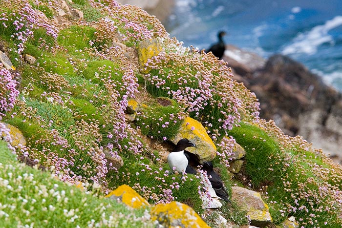 Flowers with razorbills, Great Saltee Island, off the southeastern coast of Ireland