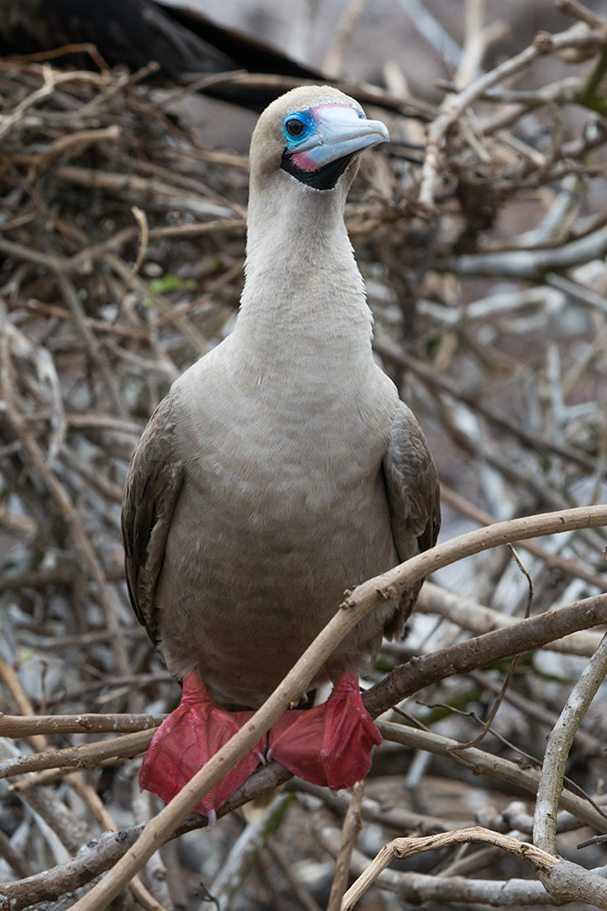 Red-footed booby, as may be obvious! They nest in the bushes/trees.
